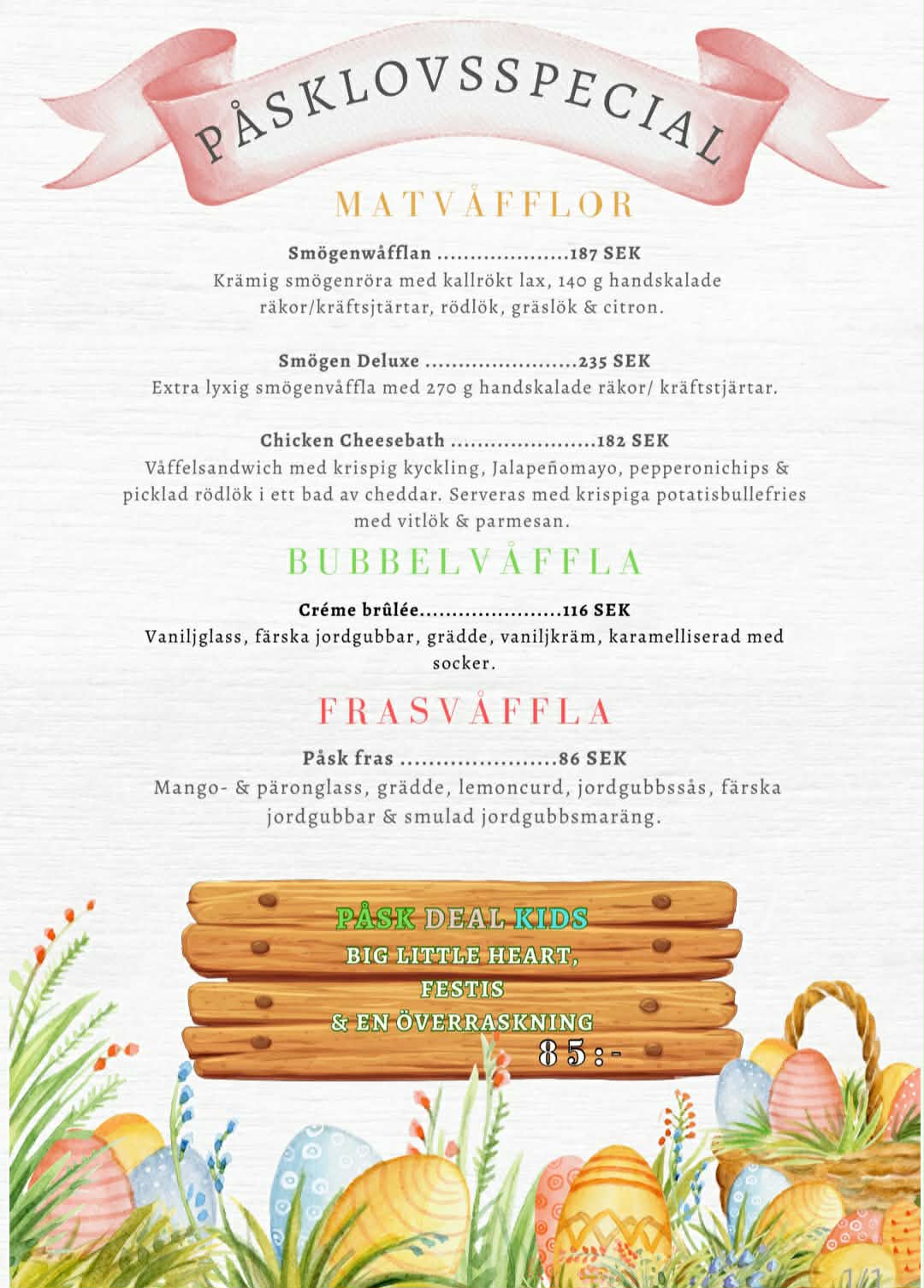 Du väljer själv vad du vill ha i din våffla. se separat blad för alternativen.