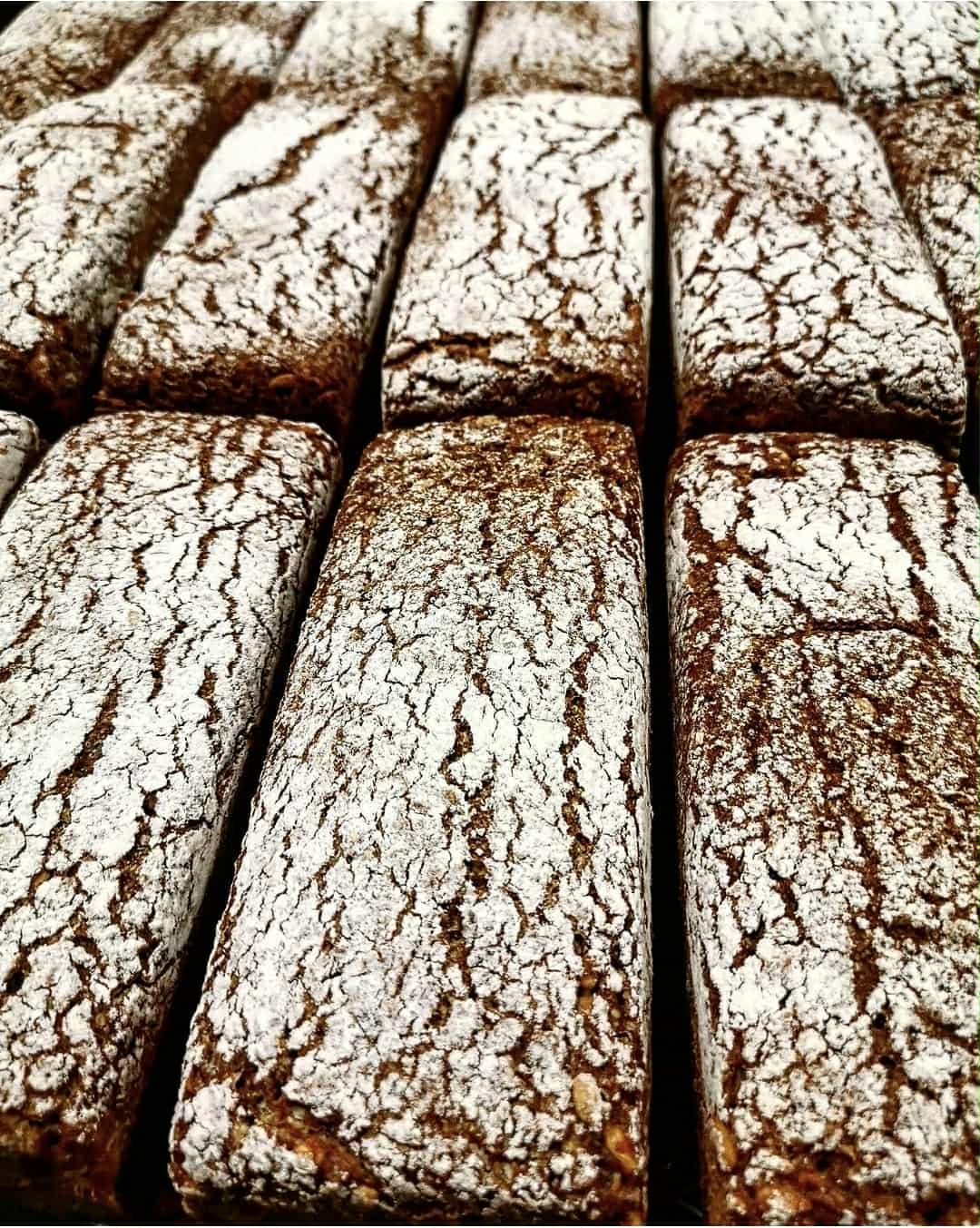 Innehåller: Rågmjöl, Vetemjöl, rågkross rågsurdeg, solrosfrö, linfrö, malt, salt, sirap.